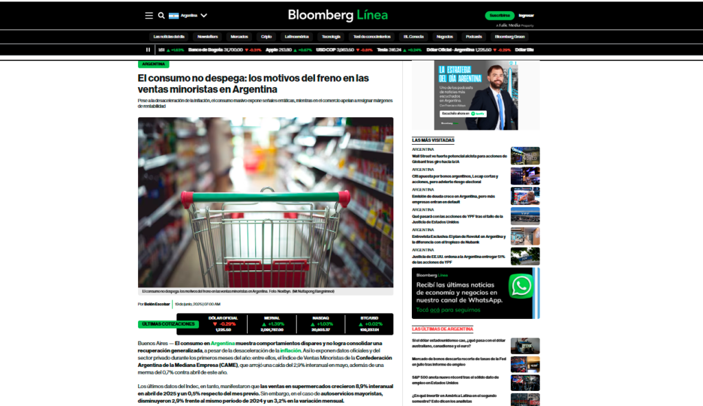 Bloomberg analiza el contexto comercial argentino y APYCE suma la mirada del sector gastronómico