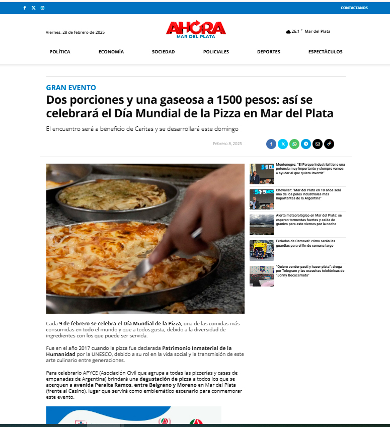 El 9 de febrero se celebró el día mundial de la pizza. Para celebrarlo APYCE brindó una degustación de pizza a todos los que se acercaron frente al Casino en Mar del Plata